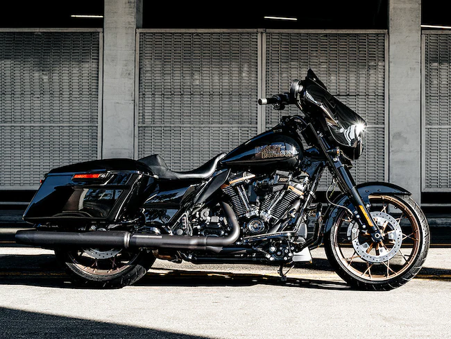 | Street Glide® ST Équipé d’un puissant moteur Milwaukee-Eight® 117, c’est un Bagger performant destiné aux pilotes qui n’en ont jamais assez. | Road Glide® ST Un Bagger performant au style typique de la Côte Ouest, avec toute la puissance du moteur Milwaukee-Eight® 117. |